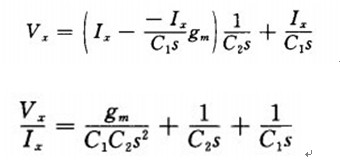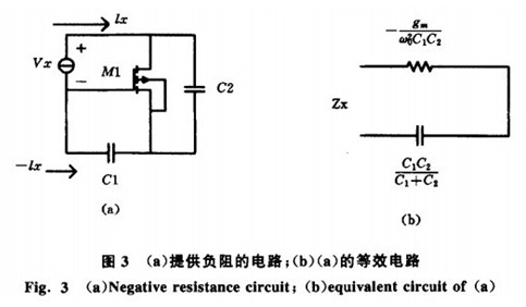 對于S=jw加, 此阻抗由一個即是-gm/(ClCZw2)的負電阻串連C1 和C2組成(圖3(b))