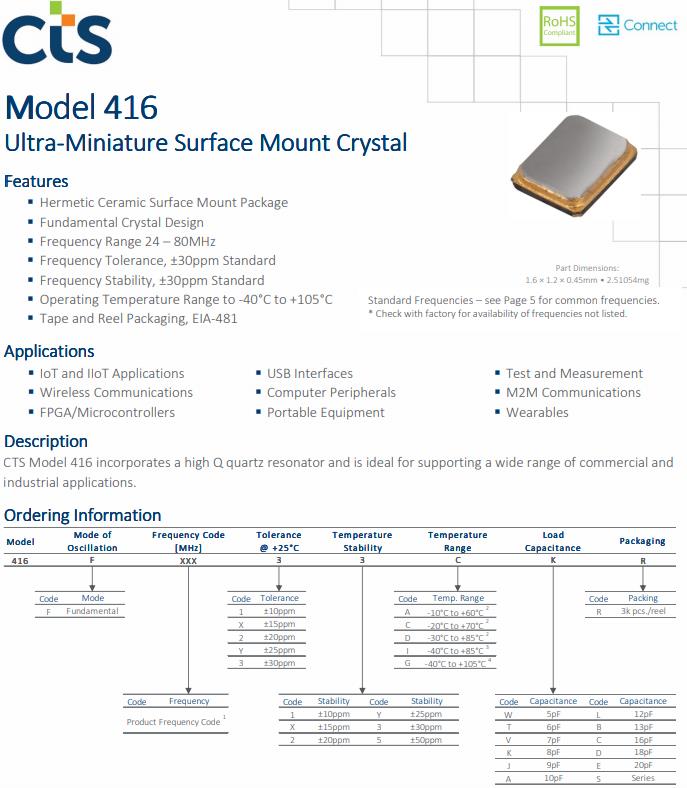 445A35E16M00000 | CTS晶振 | 445 | MHz Crystal | 16MHz |
