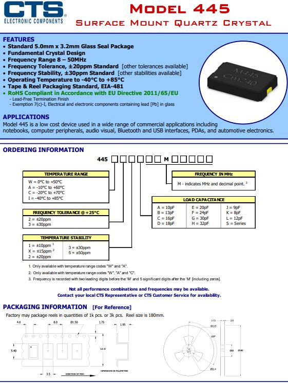 445A35D24M57600 | CTS晶振 | 445 | 24.576MHz | 2-SMD, No Lead |