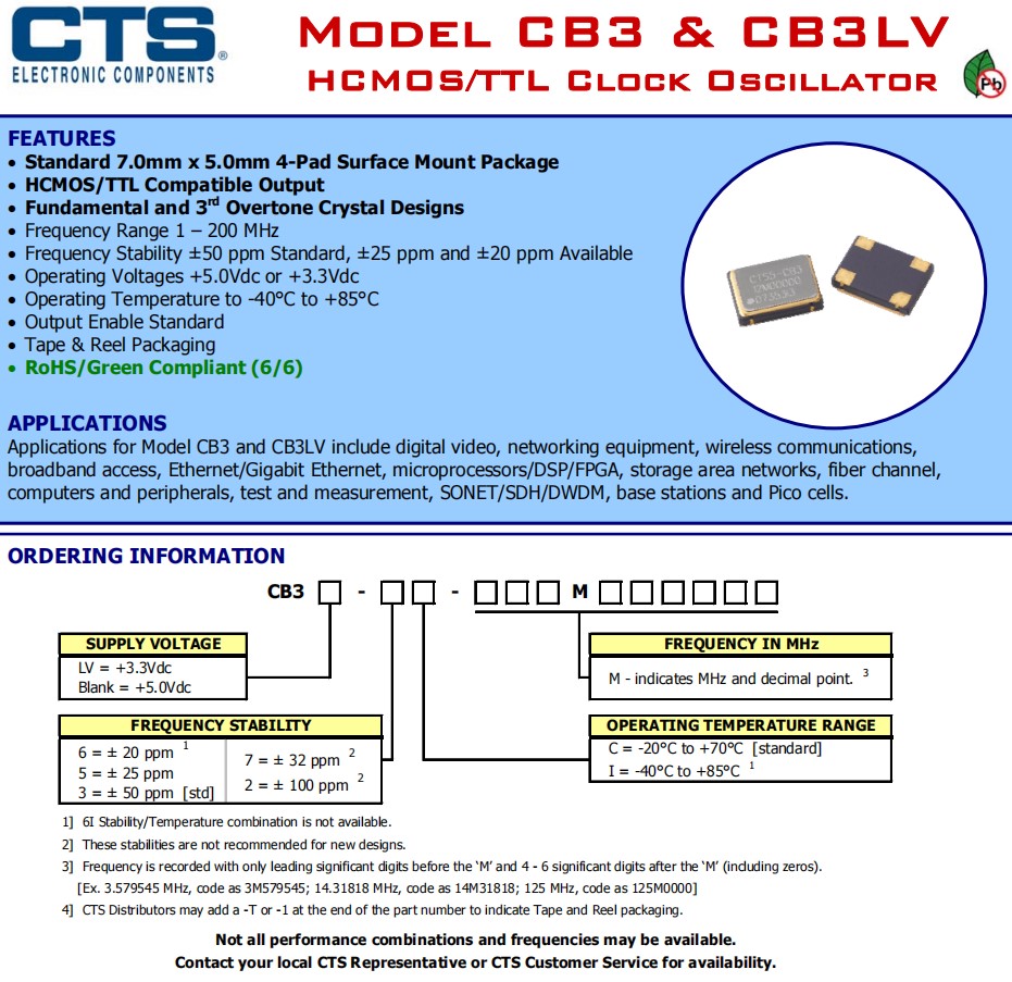 | CB3LV-3I-40M0000 | CTS晶振 | CB3LV | 40MHz | ±50ppm | 4-SMD, No Lead |