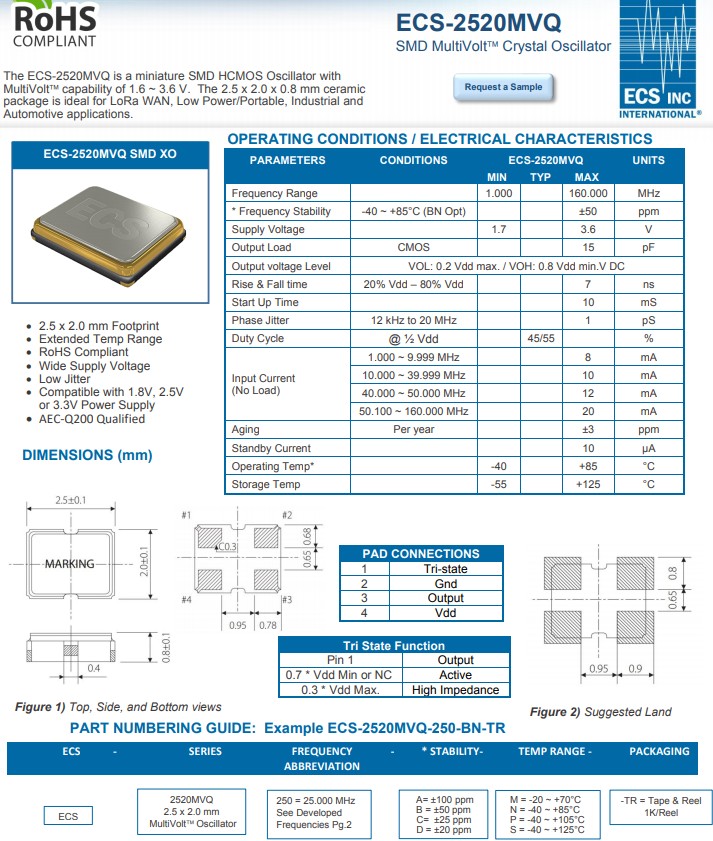 更多>>ECS-2520MVQ-1250-BS-TR多電壓晶振非常適合汽車和物聯網應用