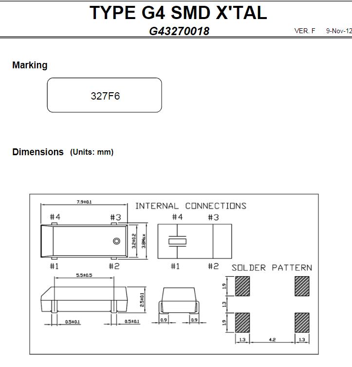 G43270018 | Diodes晶振 | SaRonix-eCera™ G4 | kHz Crystal (Tuning Fork) | 32.768kHz | - |