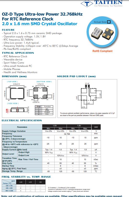 更多>>OXETGLJANF-26.000000泰藝超低功耗32.768kHz RTC參考時(shí)鐘