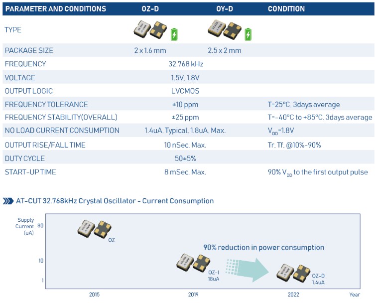 更多>>泰藝晶振推出超低電流晶振OZ-D和OY-D