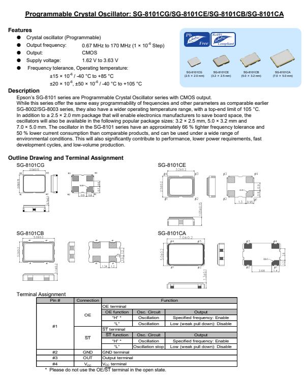 X1G005191005600 | SG-8101CA | 8.000000 MHz | 7.00 x 5.00 x 1.40 mm | CMOS | 1.620 to 3.630 V | -40 to 105 °C |