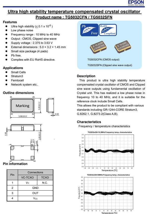 X1G005401001100 | TG5032SFN | 40.000000 MHz | 5.00 x 3.20 x 1.45 mm | 3.135 to 3.465 V | +/-1.0 ppm | -40 to ++85 °C | +/-0.28 ppm |