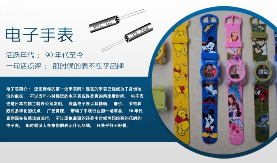 還記得小時(shí)候帶的電子手表嗎?電子表對我兒時(shí)的印象很深,記得讀小學(xué)三年級的時(shí)候班里有個(gè)同學(xué)他媽媽給他買了一塊電子表,很漂亮,因?yàn)槭切『⒆訂幔靠傁矚g拿著別人沒有的東西在別人面炫耀,隨著時(shí)間的過去班里有越來越多的同學(xué)都賣了電子表,后來有一天放學(xué)回到家里我就和我媽媽說我要買電子表,班里很多人都買了,可是媽媽沒有答應(yīng),那時(shí)候的電子表很便宜幾塊錢就能買到,可媽媽一直沒有跟我買,直到我讀四年級了那天我過生日,媽媽送給我一塊電子表當(dāng)生禮物,當(dāng)時(shí)特別高興,那是我擁有的第一塊電子手表??墒菦]有帶多久有一次和同學(xué)玩耍時(shí)不小心把表給弄壞了,不動(dòng)了,拿回家爸爸把表拆開來看能不能修好,當(dāng)時(shí)我看到里面有很多奇奇怪怪的東西,也不知道是什么,可有一顆小東西到今天我接觸了這個(gè)行業(yè)才知道,原來它叫做晶振元件,是給電子表提供時(shí)間顯示的一顆電子元件。電子表最早由日本精工制表公司發(fā)明,而精工早期是做手表的,慢慢得也開始生產(chǎn)晶振,才會(huì)有今天的精工晶振品牌。