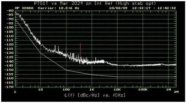 馬可尼2024現(xiàn)在設(shè)置為使用外部基準(zhǔn)電壓源.另一個(gè)CFS10B-03用作外部基準(zhǔn)電壓源. 相位噪聲的測(cè)量方法與以前完全相同.