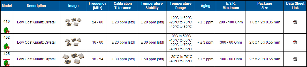 晶振規(guī)格參數(shù) | 型號(hào)425 | |