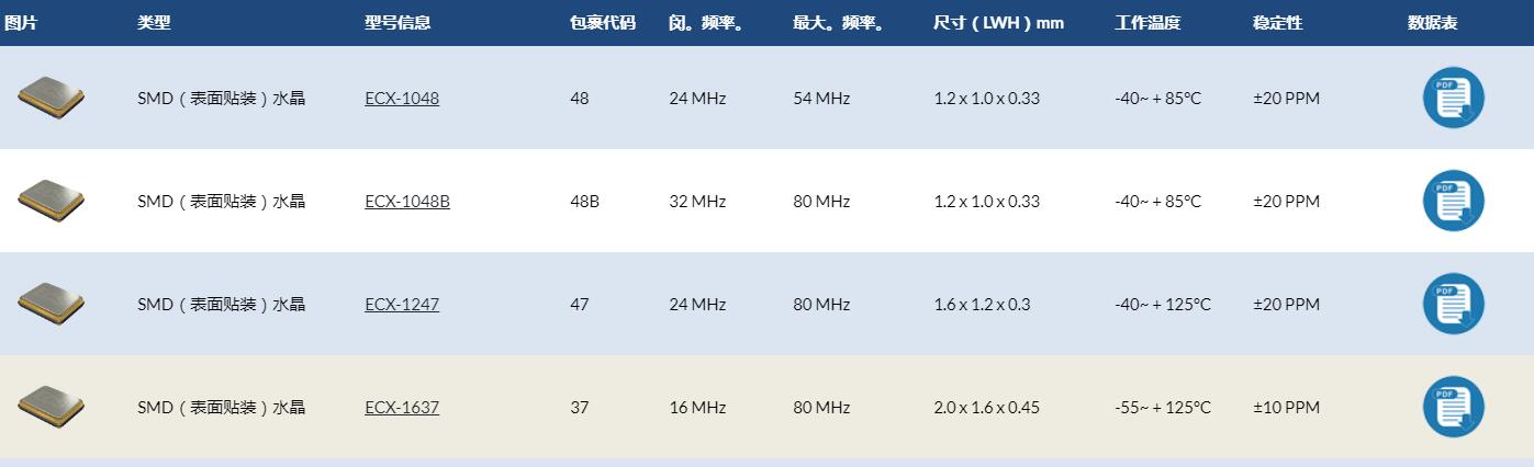 原廠編碼 | 廠家 | 型號 | 系列 | 頻率 | 工作溫度 | 封裝 | 尺寸 | 高度 |