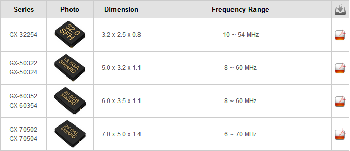 晶振目錄 | 希華晶振型號GX-60352 GX-60354 | |