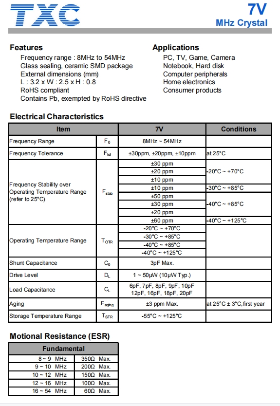 7M-38.400MAHV-T | TXC晶振 | 7M | MHz Crystal | 38.4MHz | ±30ppm | -40°C ~ 85°C |