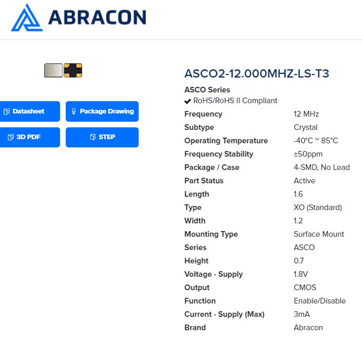 ASEMPC-12.000MHZ-LR-T | Abracon晶振 | Pure Silicon™ ASEMP | MEMS (Silicon) | 12MHz | 2.25 V ~ 3.6 V | -40°C ~ 85°C |