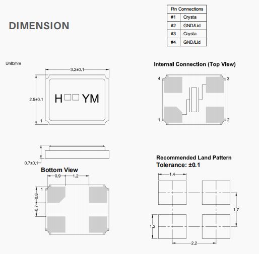 X3S032000BC1HA-CHPZ | 加高晶振 | HSX321S | 32 MHz | ±10ppm | 12pF |