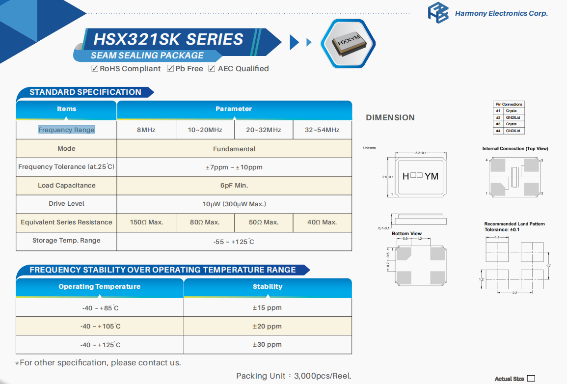 X3S010000BK1H-X | 加高晶振 | HSX321S | 10 MHz | ±30ppm | 20pF |